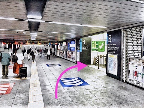 3,4番線ともに西船橋方面行きホーム(3号車3番扉/先頭から3両目)