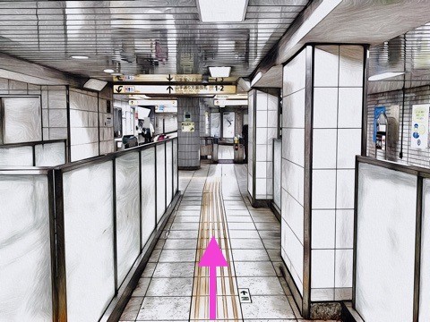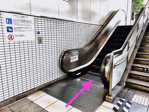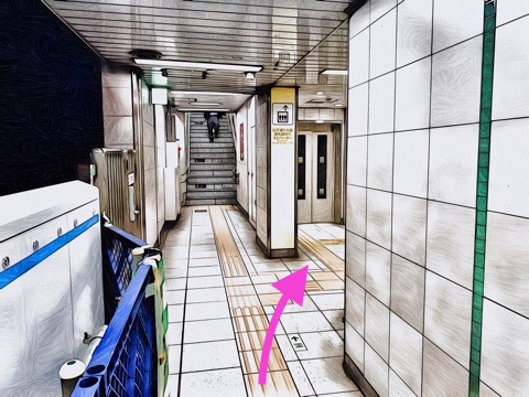 10号車4番扉(先頭から1両目)付近からエレベーターへ