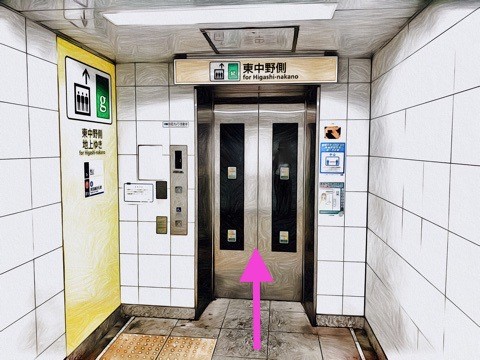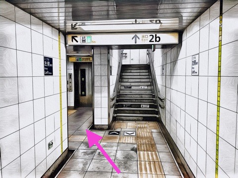 10号車4番扉(先頭から1両目)付近からエレベーターへ