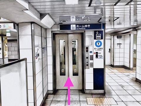 前方のエレベーターでホーム階へ