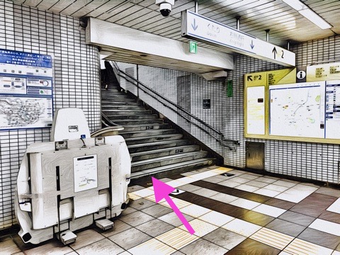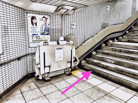 階段昇降機を降り右へ