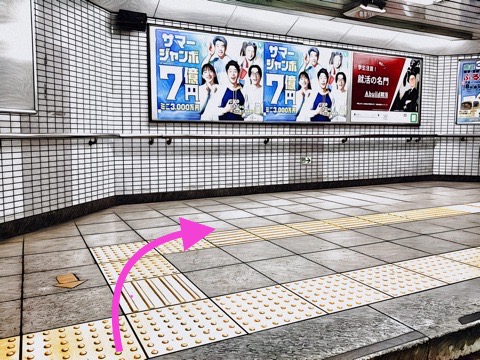 10号車3番扉(先頭から1両目)付近の改札を出て右へ