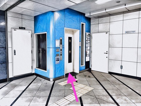 エレベーターg出入口のエレベーターへ