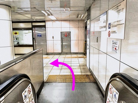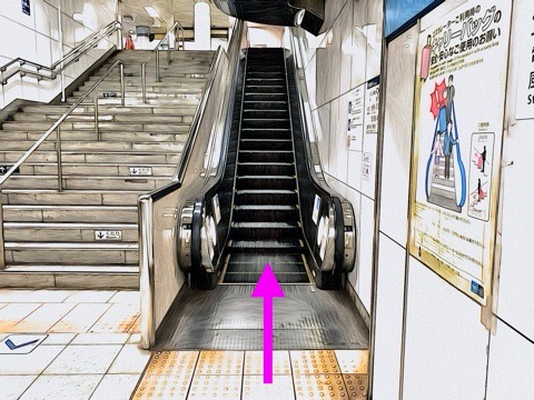 前方のエスカレーターへ