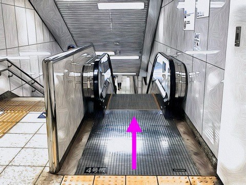 前方のエスカレーターへ