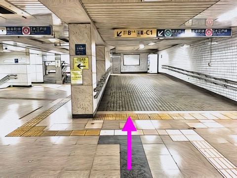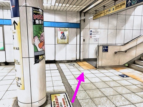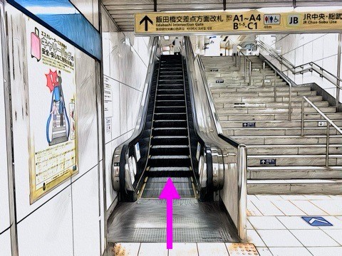 10号車4番扉(先頭から1両目)付近のエスカレーターへ