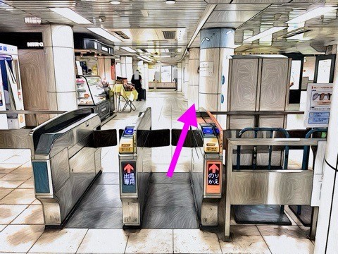 エスカレーターを降り右前方の改札へ