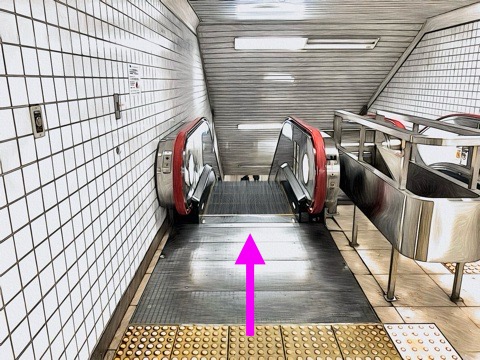 エスカレーターでホーム階へ