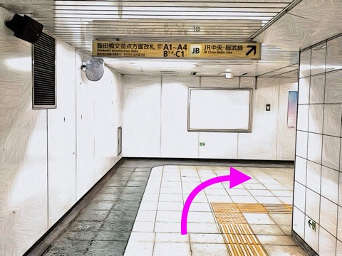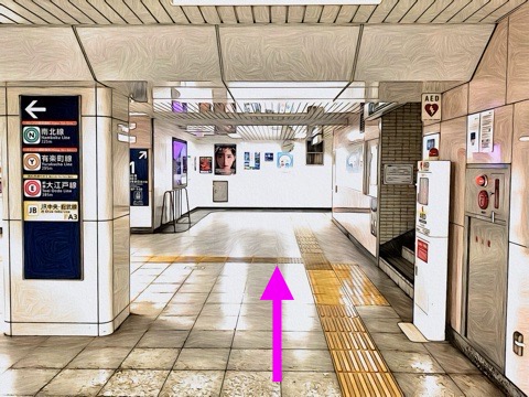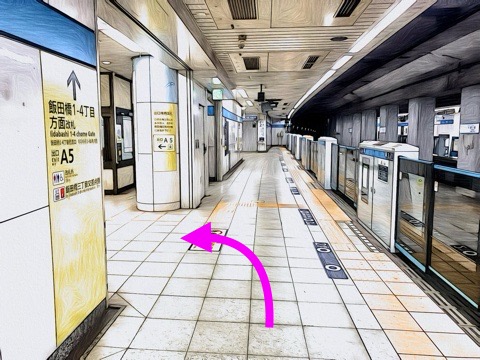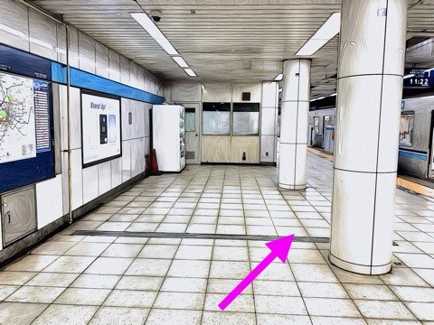 8号車4番扉(先頭から3両目)付近のエレベーターへ