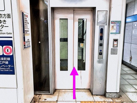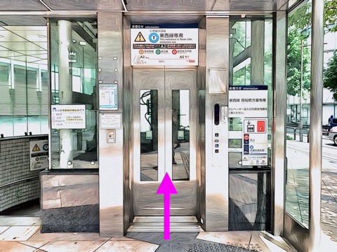 出入口A5のエレベーターへ