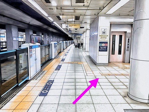 2番線が中野方面行きホーム(8号車4番扉/先頭から3両目)