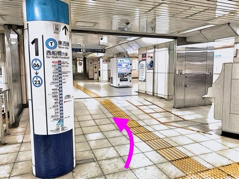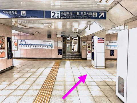 2番線が中野方面行きホーム(8号車4番扉/先頭から3両目)