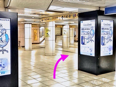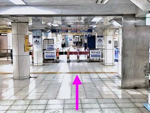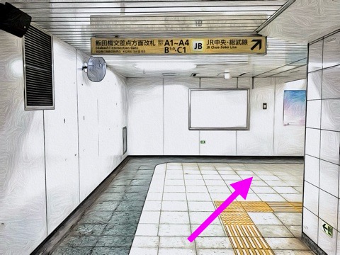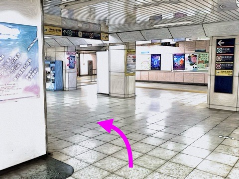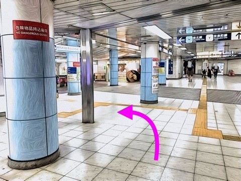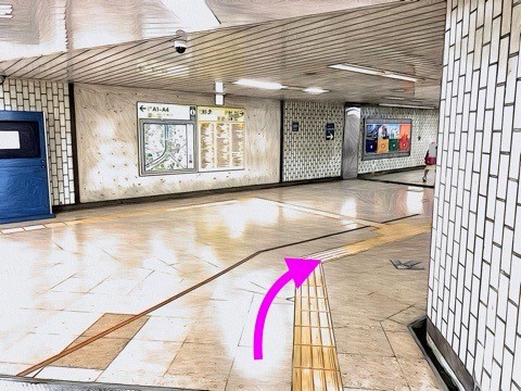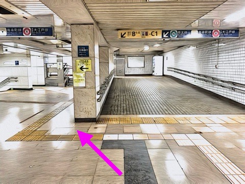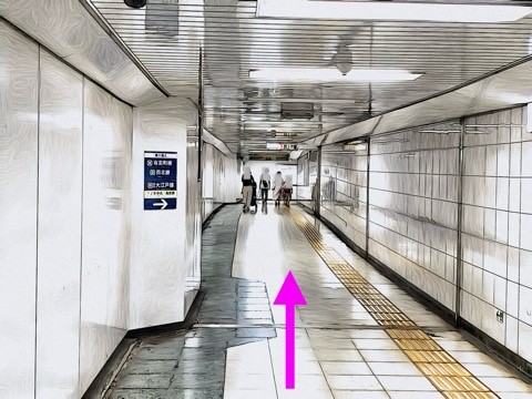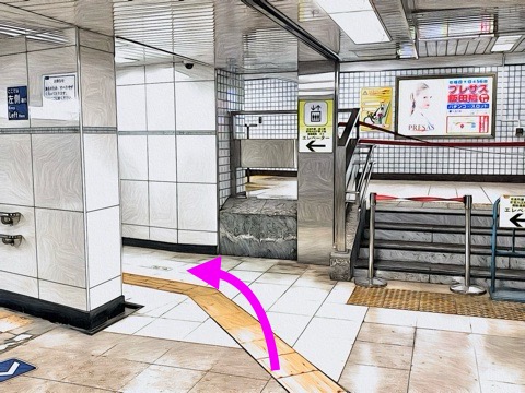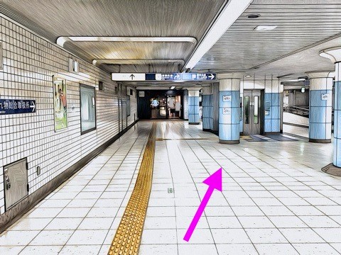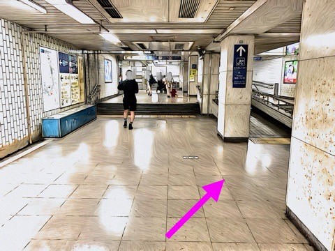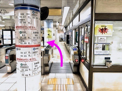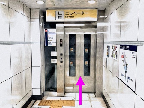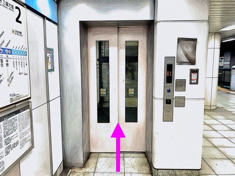 8号車4番扉(先頭から3両目)付近のエレベーターへ