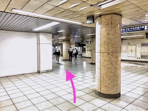 渋谷方面行きホーム(1号車1番扉/先頭から10両目)