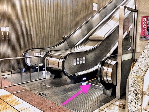 前方のエスカレーターへ