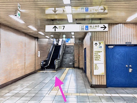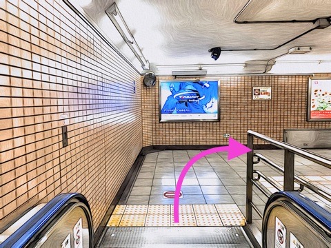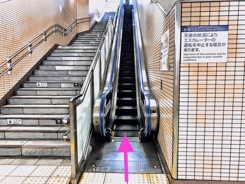 前方のエスカレーターへ