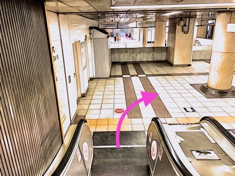 前方のエスカレーターへ