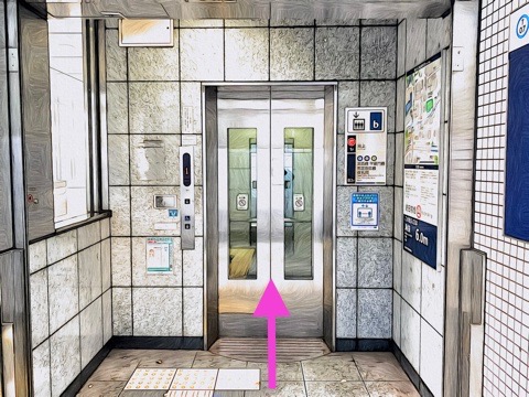 出入口7のエレベーターへ