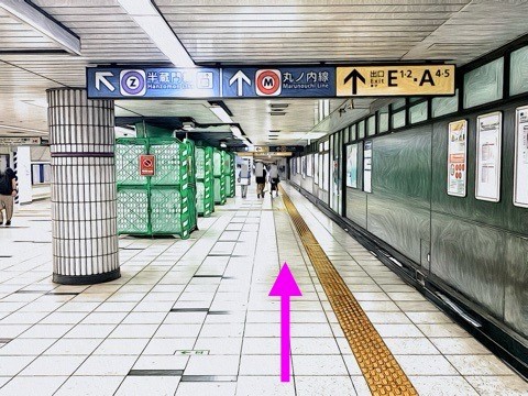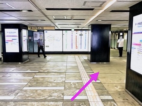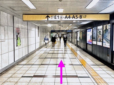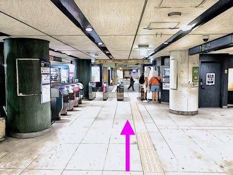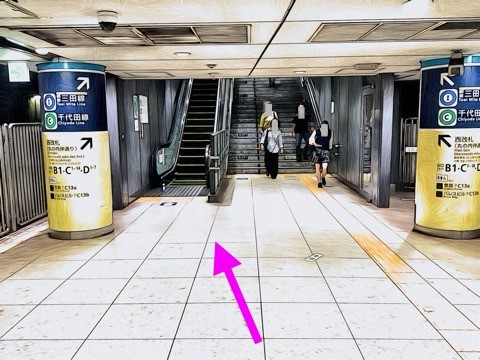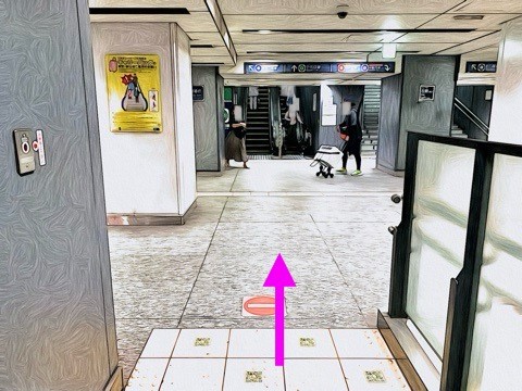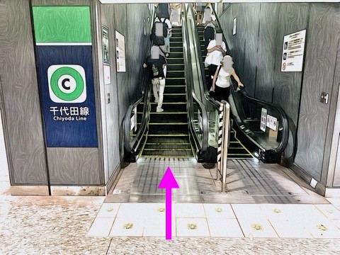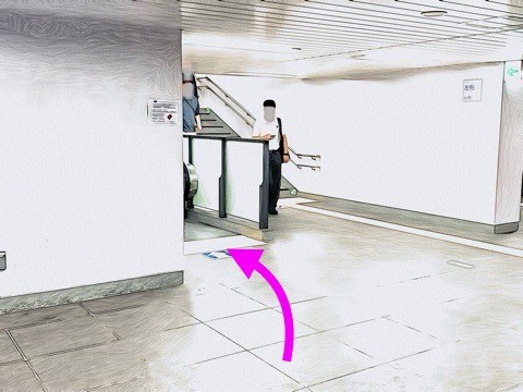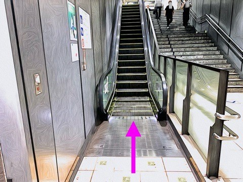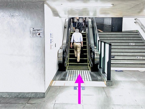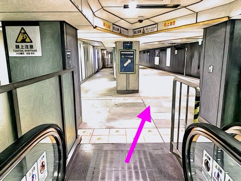 10号車4番扉(先頭から1両目)付近のエスカレーターへ