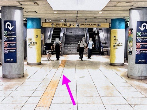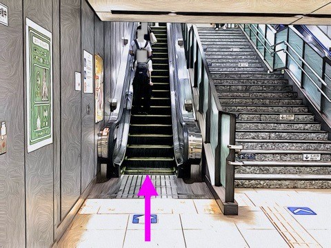 1号車1番扉(先頭から1両目)付近のエスカレーターへ