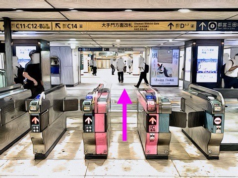 左前方の改札へ