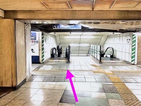エスカレーターを降り前方の改札へ