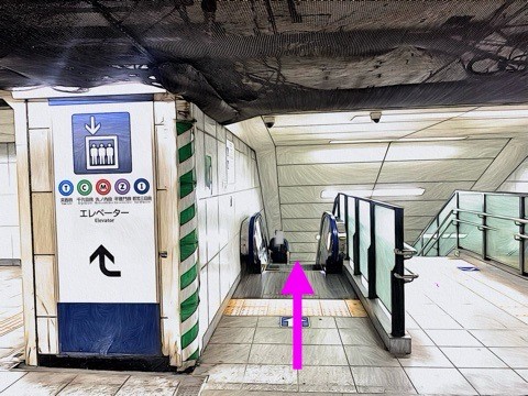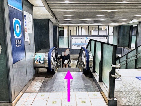 前方のエスカレーターへ