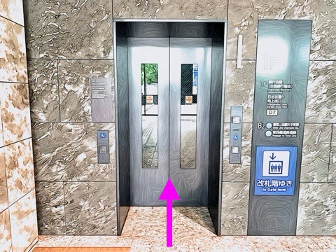出入口D7のエレベーターへ