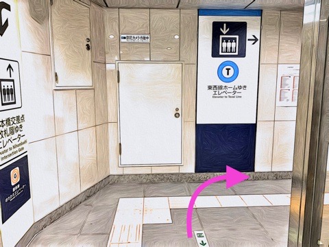 4番線が中野方面行きホーム(6号車4番扉/先頭から5両目)