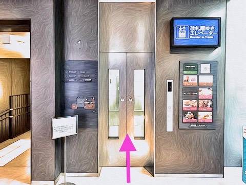 エレベーターでホーム階へ