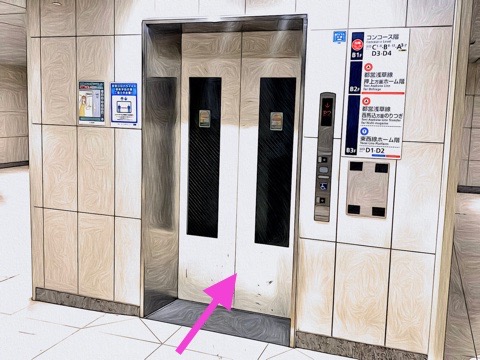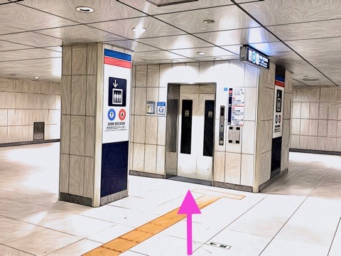 出入口C5のエレベーターへ