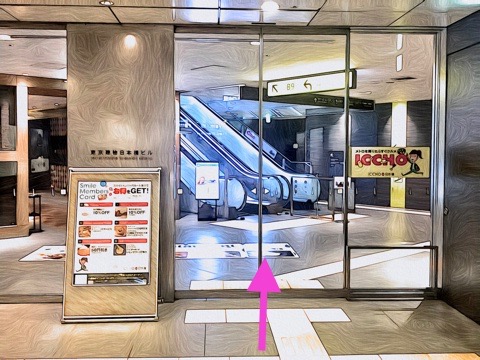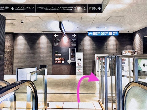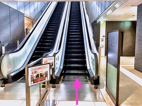 3号車4番扉(先頭から8両目)付近のエスカレーターへ
