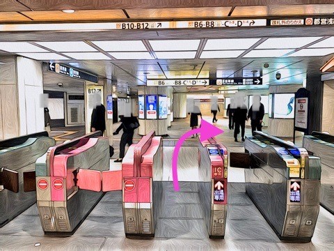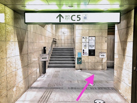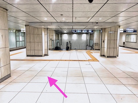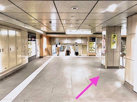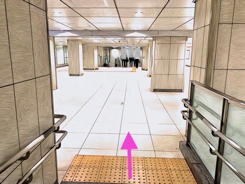 4号車1番扉(先頭から4両目)付近のエスカレーターへ