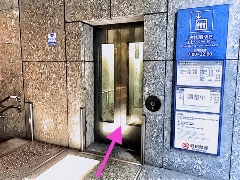 出入口B0のエレベーターへ