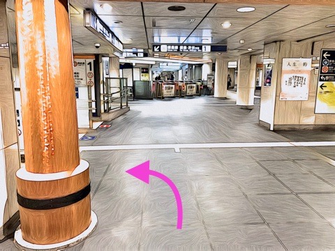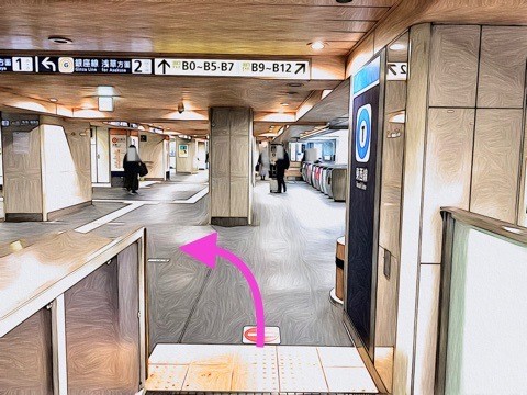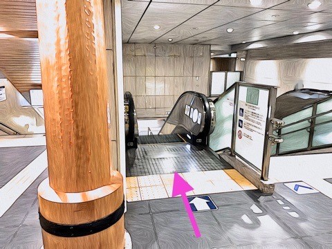 4号車1番扉(先頭から4両目)付近のエスカレーターへ
