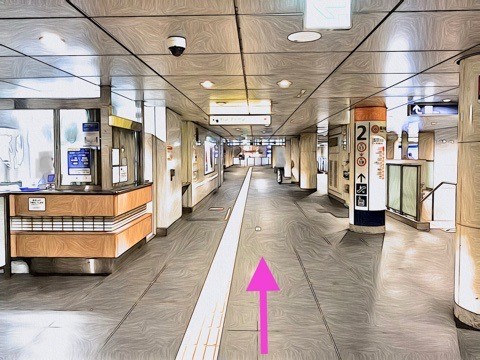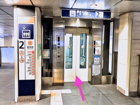 7号車1番扉(先頭から7両目)付近のエレベーターで上の階へ