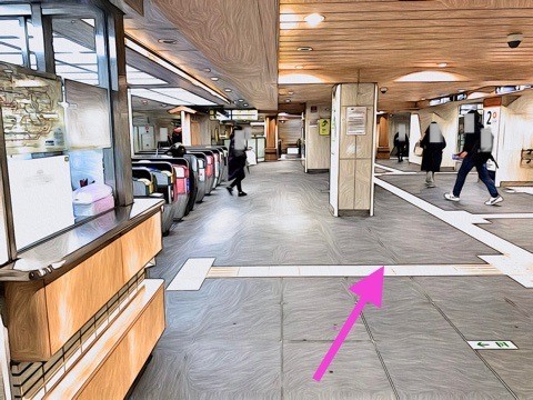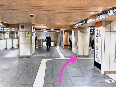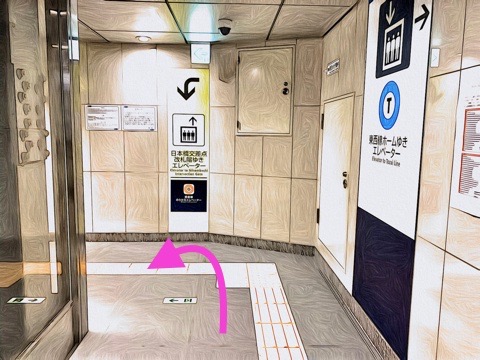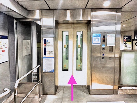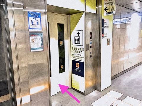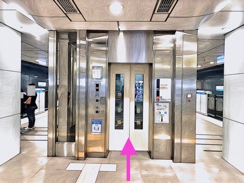 7号車1番扉(先頭から7両目)付近のエレベーターで上の階へ