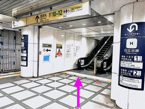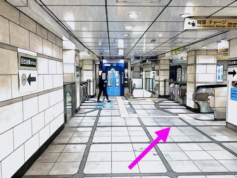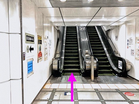 9号車4番扉(先頭から9両目)からエスカレーターへ