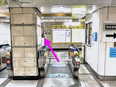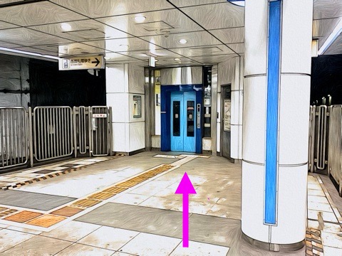 エレベーターを降り左前方の改札へ