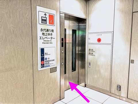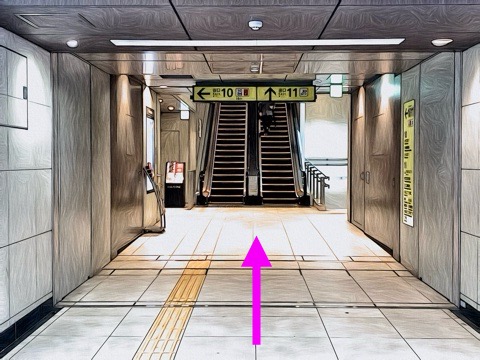 10号車4番扉(先頭から10両目)からエレベーターへ