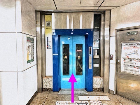 左にあるエレベーターへ