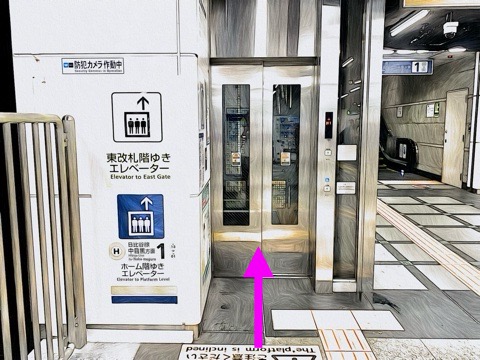 エレベーターで日比谷線中目黒方面行きホーム階へ