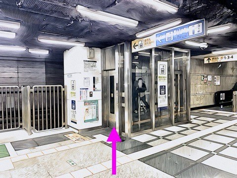 1号車1番扉(先頭から10両目)からエレベーターへ
