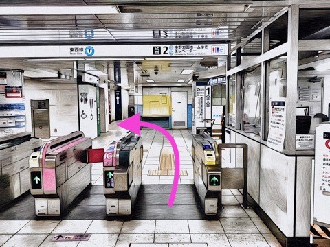 2番線が中野方面行きホーム(1号車1番扉/先頭から10両目)