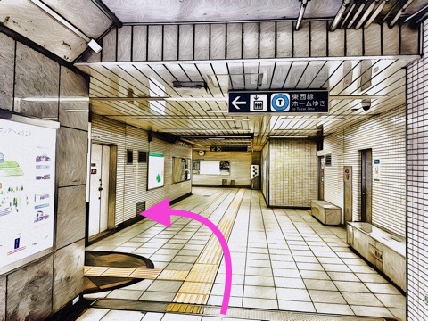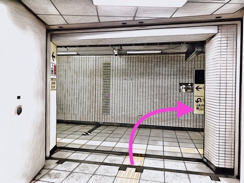 出入口4bのエレベーターへ