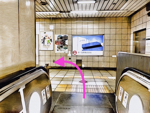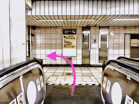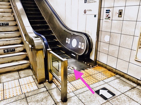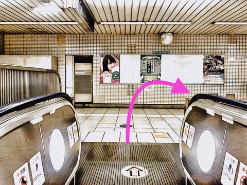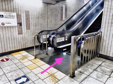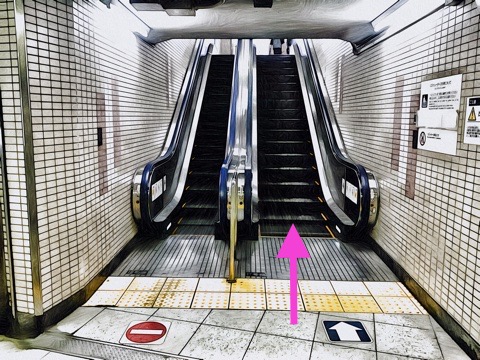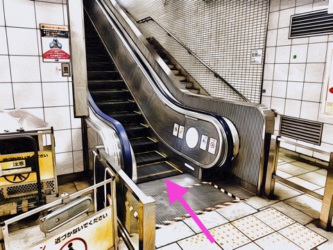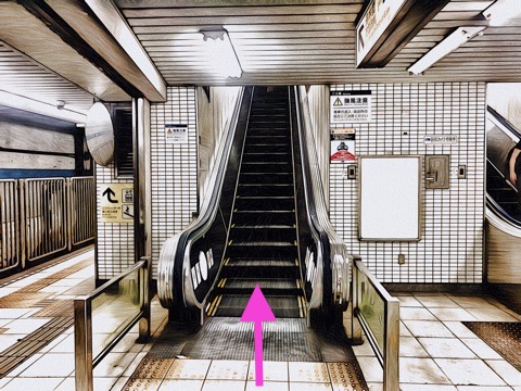 10号車3番扉(先頭から10両目)付近のエスカレーターで上の階へ