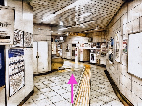 通路に沿って前方エスカレーターへ