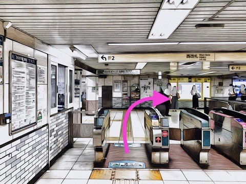 前方の改札へ