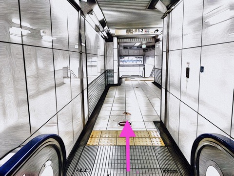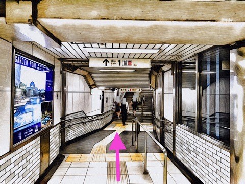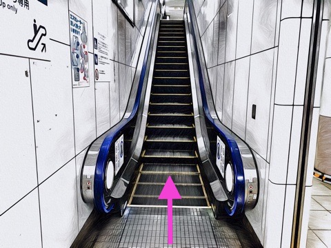 7号車1番扉(先頭から4両目)付近のエスカレーターへ