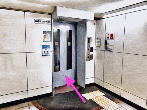 右にあるエレベーターへ